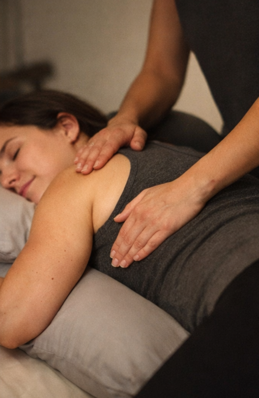 A supportive, nurturing massage tailored to the changing needs of pregnancy, using safe positioning and gentle techniques to relieve discomfort, reduce stress, and encourage overall ease in the body.